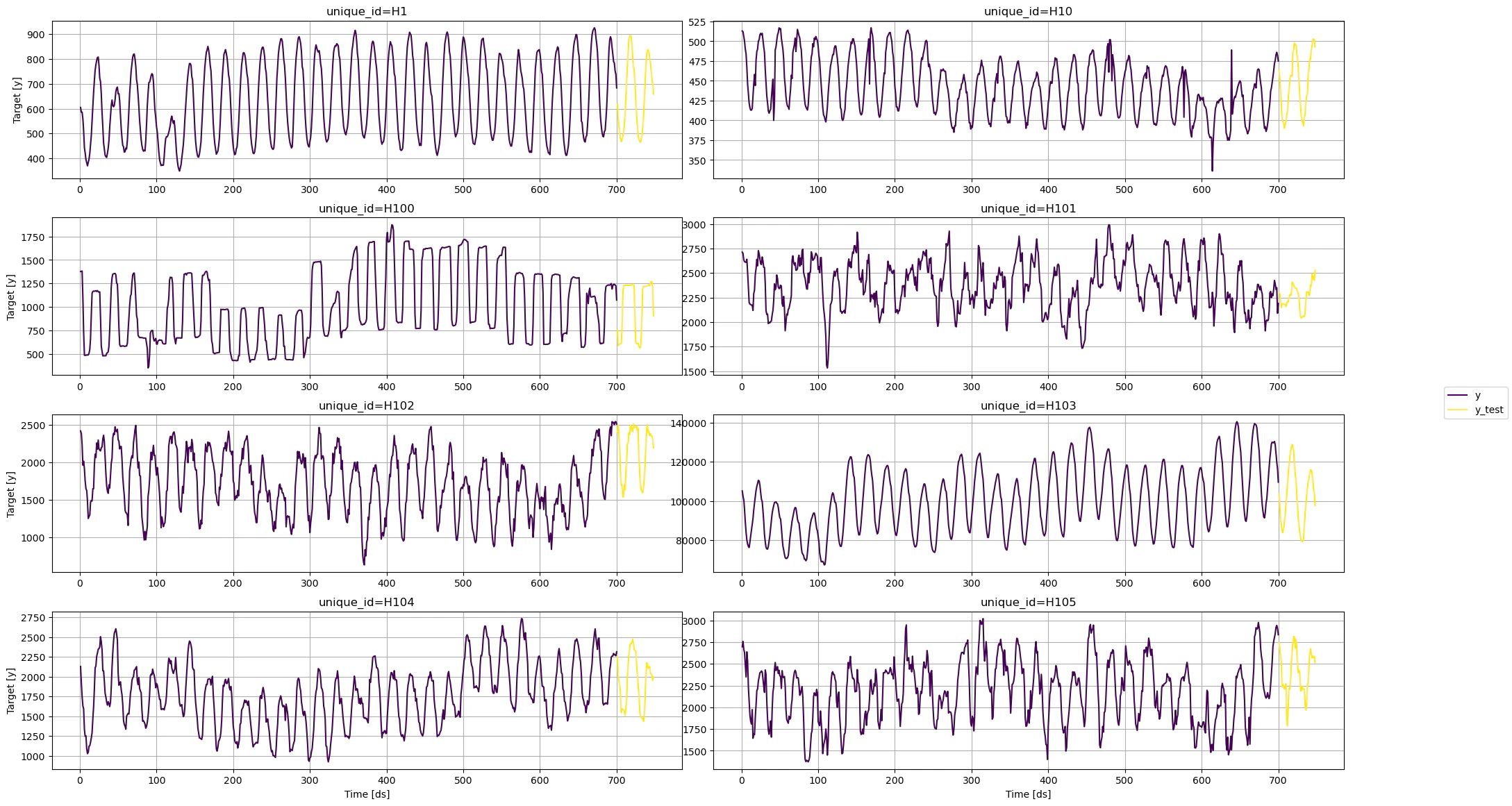 For this example, weβll use the hourly dataset from the M4 Competition. We first need to download the data from a URL and then load it as apandas dataframe. Notice that weβll load the train and the test data