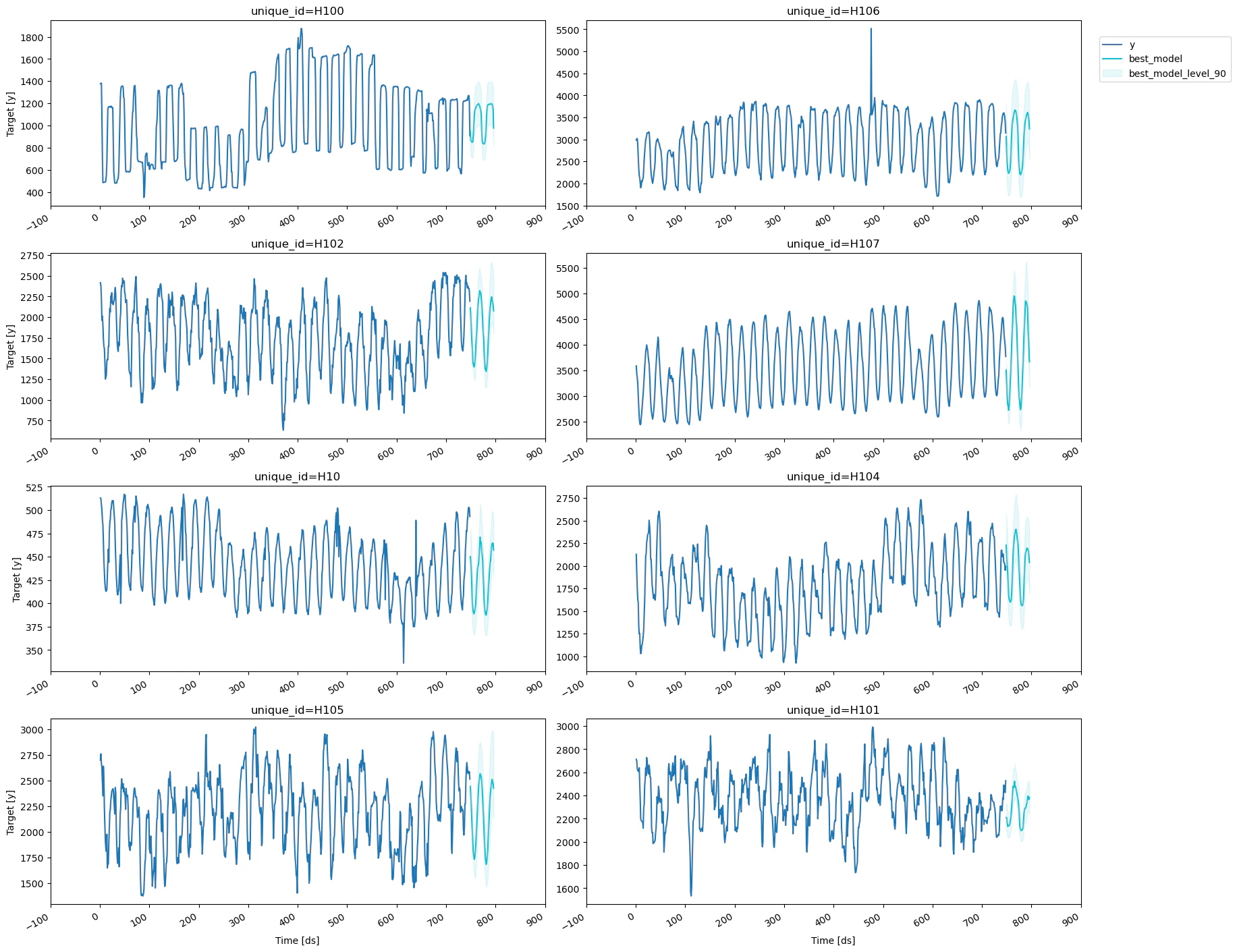 Define a utility function that takes your forecast’s data frame with the predictions and the evaluation data frame and returns a data frame with the best possible forecast for every unique_id.| unique_id | ds | best_model | best_model-lo-90 | best_model-hi-90 | |