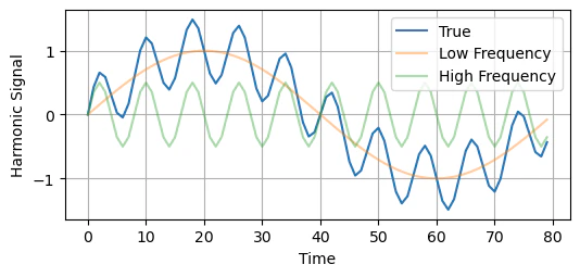 In this example, we will consider a Harmonic signal comprising two frequencies: one low-frequency and one high-frequency.