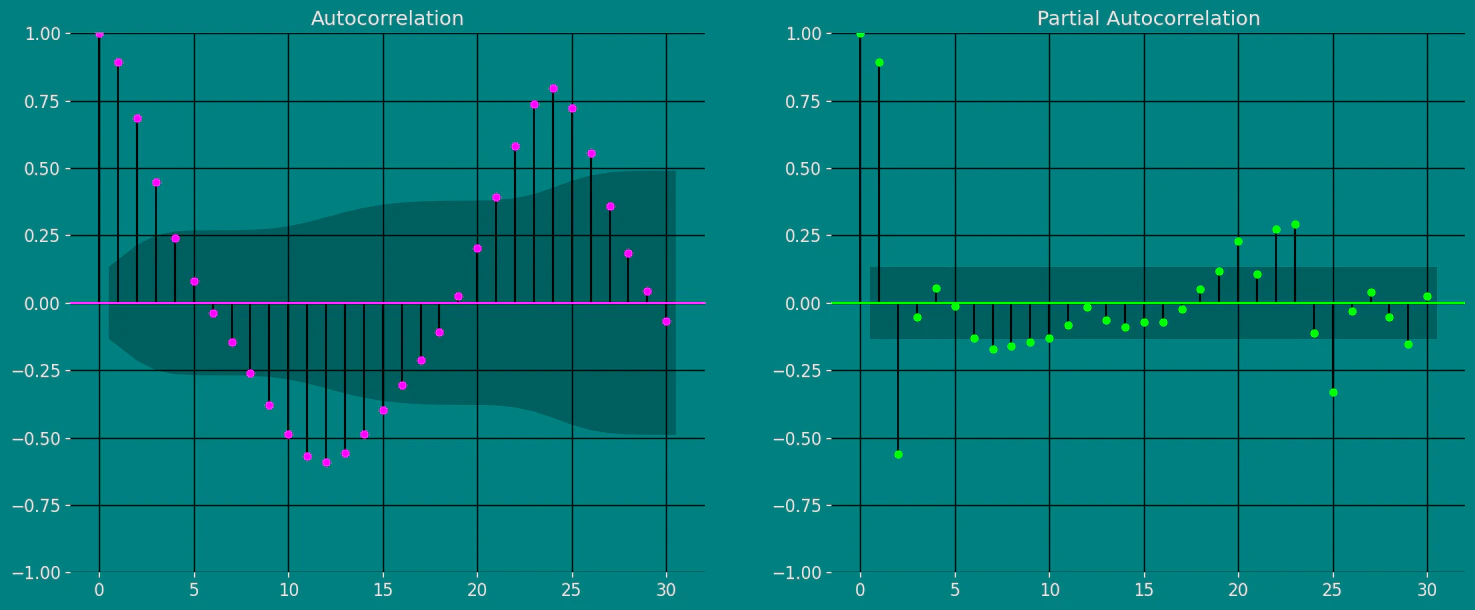 An Augmented Dickey-Fuller (ADF) test is a type of statistical test that determines whether a unit root is present in time series data. Unit roots can cause unpredictable results in time series analysis. A null hypothesis is formed in the unit root test to determine how strongly time series data is affected by a trend. By accepting the null hypothesis, we accept the evidence that the time series data is not stationary. By rejecting the null hypothesis or accepting the alternative hypothesis, we accept the evidence that the time series data is generated by a stationary process. This process is also known as stationary trend. The values of the ADF test statistic are negative. Lower ADF values indicate a stronger rejection of the null hypothesis. Augmented Dickey-Fuller Test is a common statistical test used to test whether a given time series is stationary or not. We can achieve this by defining the null and alternate hypothesis.- Null Hypothesis: Time Series is non-stationary. It gives a time-dependent trend.