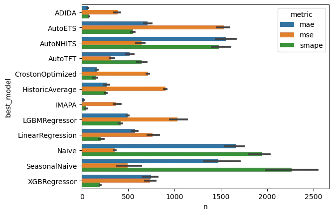 | unique_id | cutoff | metric | SeasonalNaive | Naive | HistoricAverage | CrostonOptimized | ADIDA | IMAPA | AutoETS | AutoNHITS | AutoTFT | LGBMRegressor | XGBRegressor | LinearRegression | |
